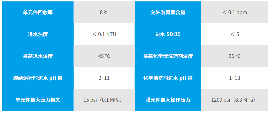 能耗低 改進(jìn)優(yōu)化芳香族聚酰胺脫鹽層、開(kāi)發(fā)更大比表面積,滿(mǎn)足在相同產(chǎn)水量要求時(shí),降低運(yùn)行壓力,從而節(jié)約能源。